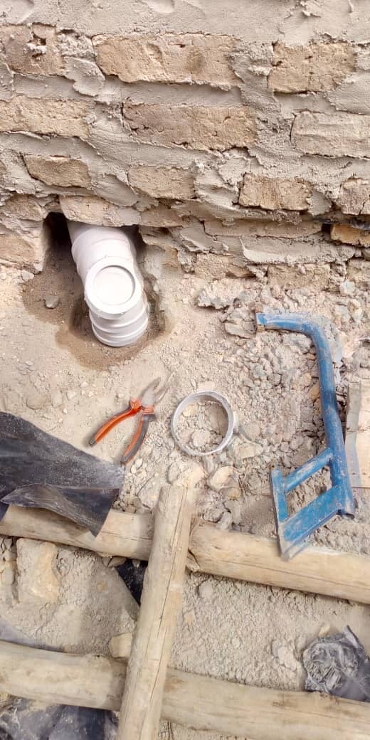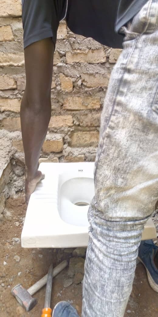 juli 2020: Zeker een nieuw project dus. Een maand later stort ook het tweede toiletgebouw in. Het is een samenloop van omstandigheden. De sceptictanks waren vol en moesten geleegd worden. Als de tanks leeg zijn, geeft dat zwakte van muren. Als er dan ook nog een hevige regenval is en er rondom gebouwd wordt aan de slaapzalen is het gauw gebeurd. Helaas, De school is dicht i.v.m. corona, maar er zijn (onder begeleiding) nog we een paar kinderen op school die geen thuis hebben. Met voorrang worden er snel twee toiletten gemaakt,