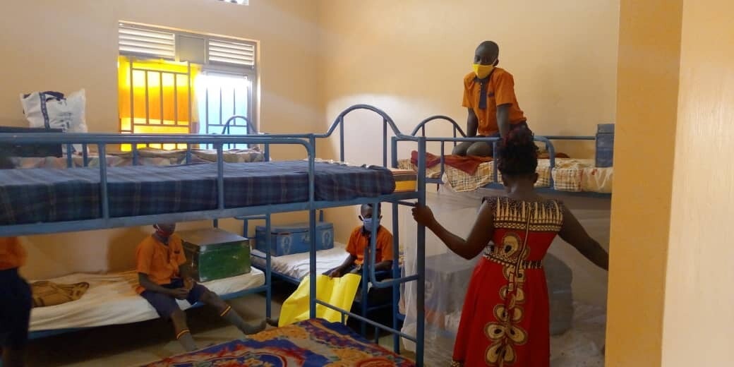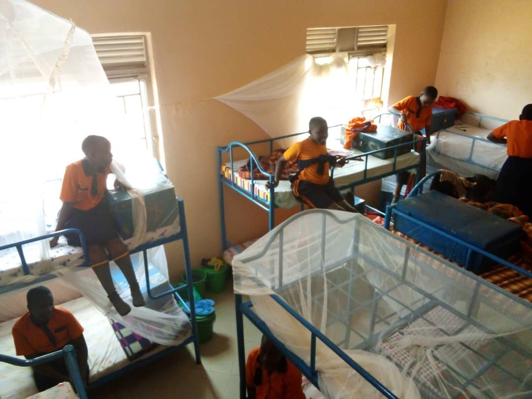 15 oktober 2020: Op deze dag komen de kinderen in Primary 7 weer voor het eerst naar school na coronatijd. En zij mogen de nieuwe slaapzalen en de matrassen inwijden. Wat een feest en wat ziet het er allemaal fantastisch uit! Nu nog de goede klamboes er op en het is klaar!