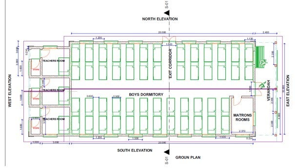 Een wijziging in de tekening hierboven: Waar de kinderen nu met elkaar in één grote ruimte slapen, komen in het nieuwe gebouw per gebouw 6 kamers voor de kinderen. Zo hebben ze wat meer privacy en daardoor is het ook wat rustiger.